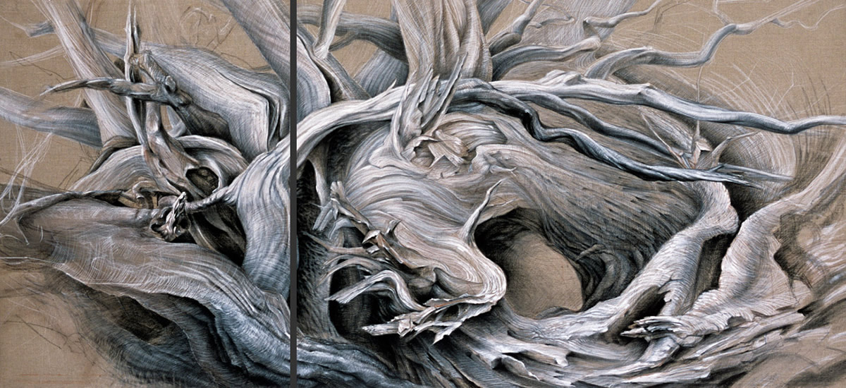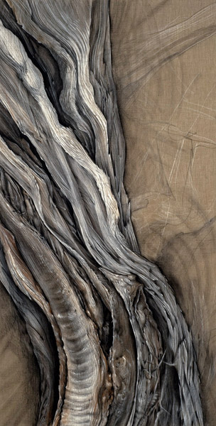 Junipers, Santa Cruz County, AZ. Linen, 4 ft x 9 ft Juniper, Arroyo Hondo, NM. Linen, 3 ft x 7 ft Juniper roots, linen, 4 ft x 9.5 ft Roots, linen, 4 ft 3 in. x 9.5 ft